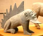 鎮墓獸是放置在墓中鎮墓驅邪確保死者靈魂安寧的種獸。這件人面獸身鎮墓獸與埃及的獅身人面像具有相同的藝術構思可見半人半獸是東西方共有的神話觀念。