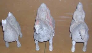 展柜里的這些兵馬俑身披鎧甲是目前國內發現最早的甲馬騎俑。鎧甲由波斯傳人我國到北魏時已相當普及。