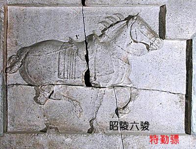 駿馬“特勤驃”是武德二年十一月至次年四月李世民消滅割據馬邑(今山西朔縣境)的劉武周勢力收復河東失地時與劉武周大將宋金剛等作戰時的坐騎排列于昭陵祭壇東側首位。此馬毛色黃里透白喙微黑色。